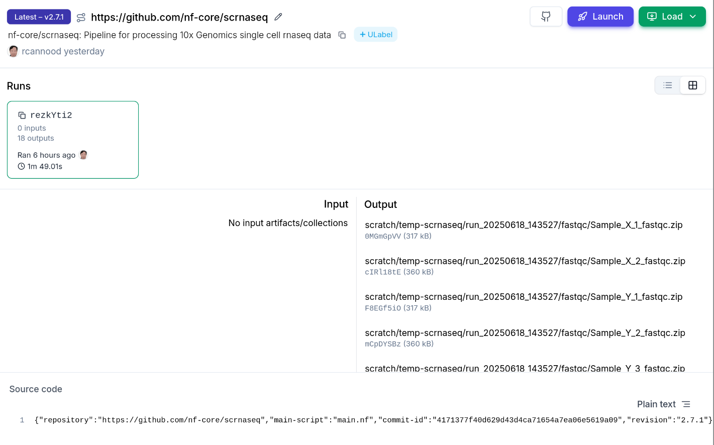 This guide shows how to register a Nextflow run with inputs & outputs for the nf-core/scrnaseq pipeline.